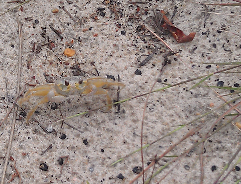 These little fellows are ghost crabs - and one of the most interesting things I noticed about them was that as long as they were in the sand, they thought they were invisible, and didn't run from me. But when they were on the road they wouldn't let me get anywhere near them, and I could only photograph the back of them, running away!